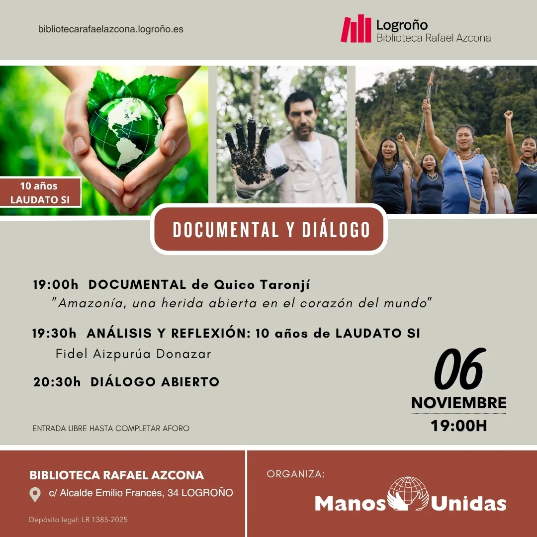 Manos Unidas La Rioja os invita a una tarde de reflexión y compromiso en la Biblioteca Pública Rafael Azcona, con dos momentos clave: