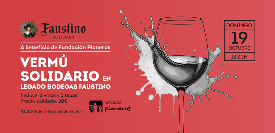 Fundación Pioneros quiere invitarte a participar en el Vermú Solidario en Legado Bodegas Faustino, que celebrará el próximo domingo 19 de octubre a las 13:30h.